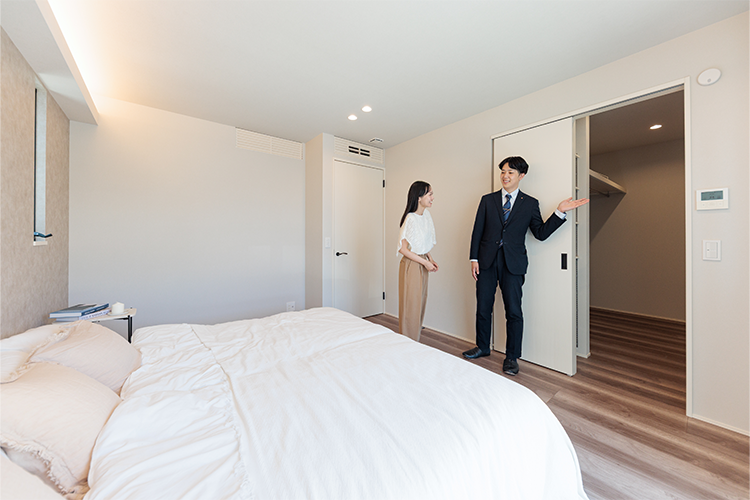 2階の寝室には、大容量のウォークインクローゼットを配置。