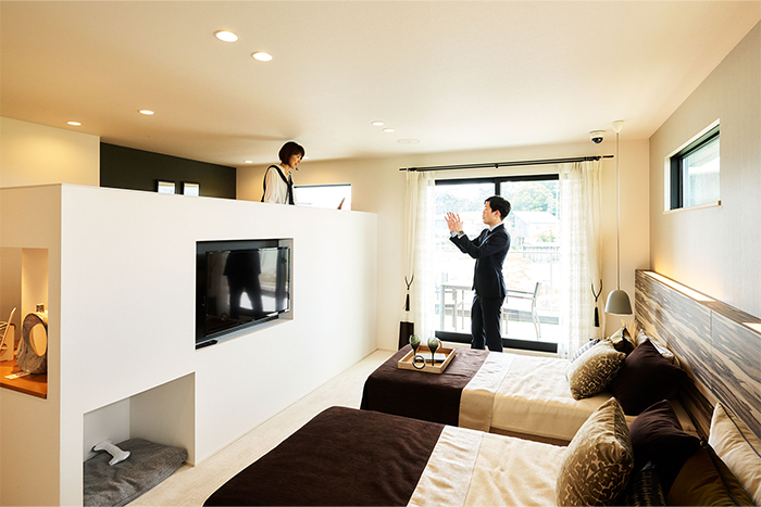 また、2階の寝室もペットと過ごすことを想定してワンちゃん用の寝るスペースが確保されていました。