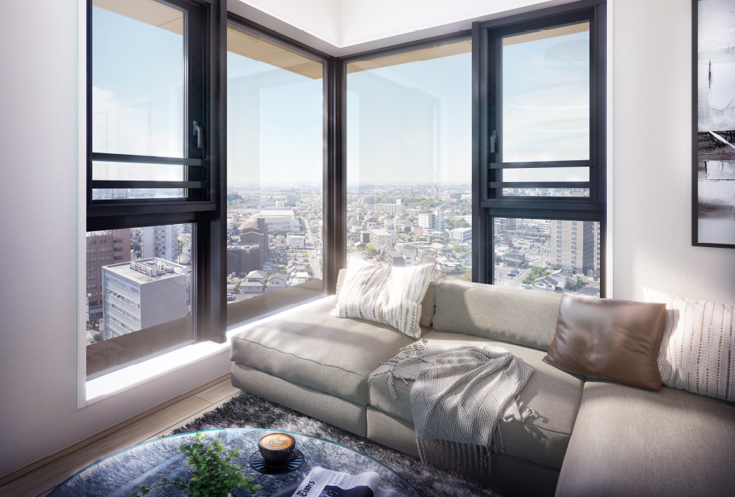 ※外観完成予想CGは、計画段階の図面を基に描き起こしたものと、計画段階の図面を基に描き起こしたものに三河豊田駅と現地を含めた空撮ドローン写真(2023年11月撮影)を合成し加工を施したものと、計画段階の図面を基に描き起こしたものに現地起点のパノラマ各階眺望写真(2024年10月撮影)を合成し加工を施したもので、実際とは多少異なります。リビングダイニング完成予想CGは、計画段階の図面を基に描き起こしたものに現地起点のパノラマ各階眺望写真(2024年10月撮影)を合成し加工を施したもので、実際とは多少異なります。室内家具・調度品は配置例を示したもので、販売価格には含まれません。雨桶、エアコン室外機、給湯器、フェンス、給気口ベントキャップ等省略、または再現されていない設備機器等がございます。※表示距離は現地からの地図上の概算です。徒歩分数は80m=1分として算出し、端数は切り上げております。※掲載の図面は計画段階のものであり、今後変更になる場合がございます。あらかじめご了承ください。※方位記号は若干誤差があります。正確な方位については設計図書でご確認ください。