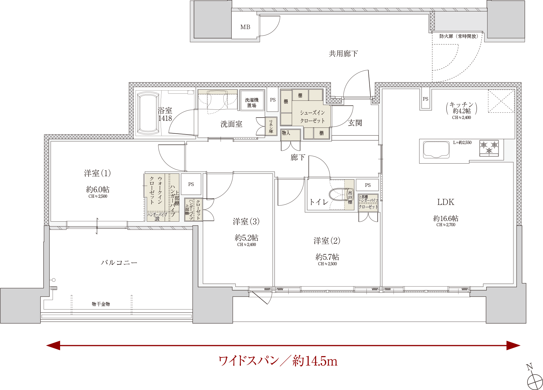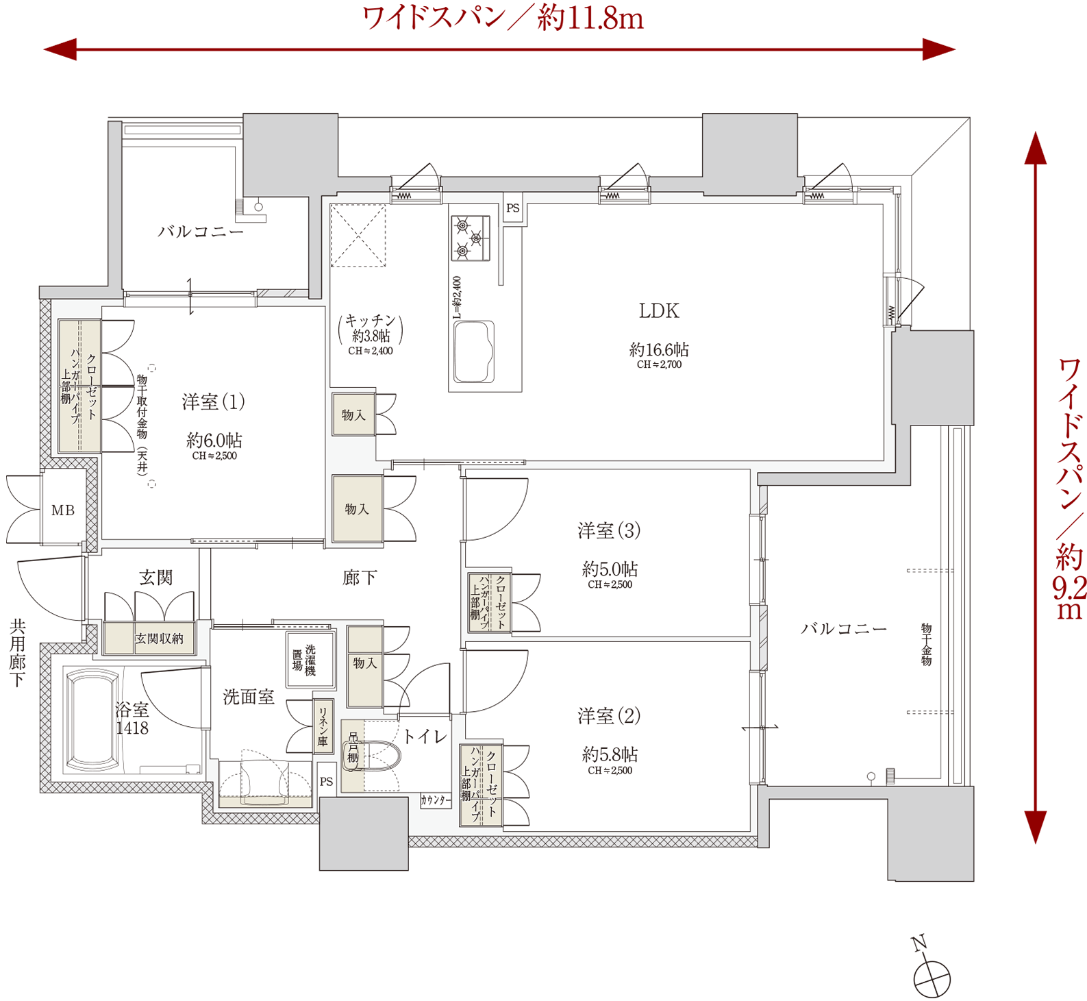 ※方位記号は若干誤差があります。正確な方位については設計図書でご確認ください。