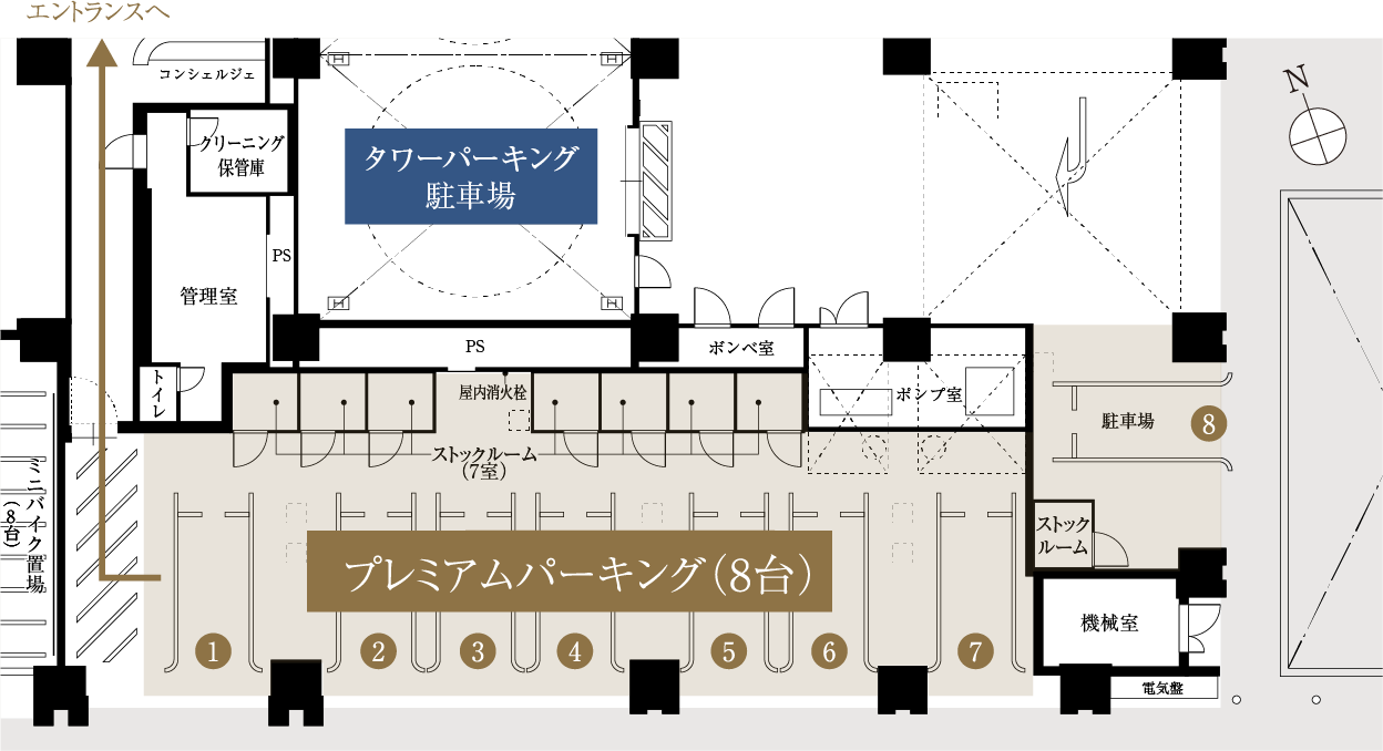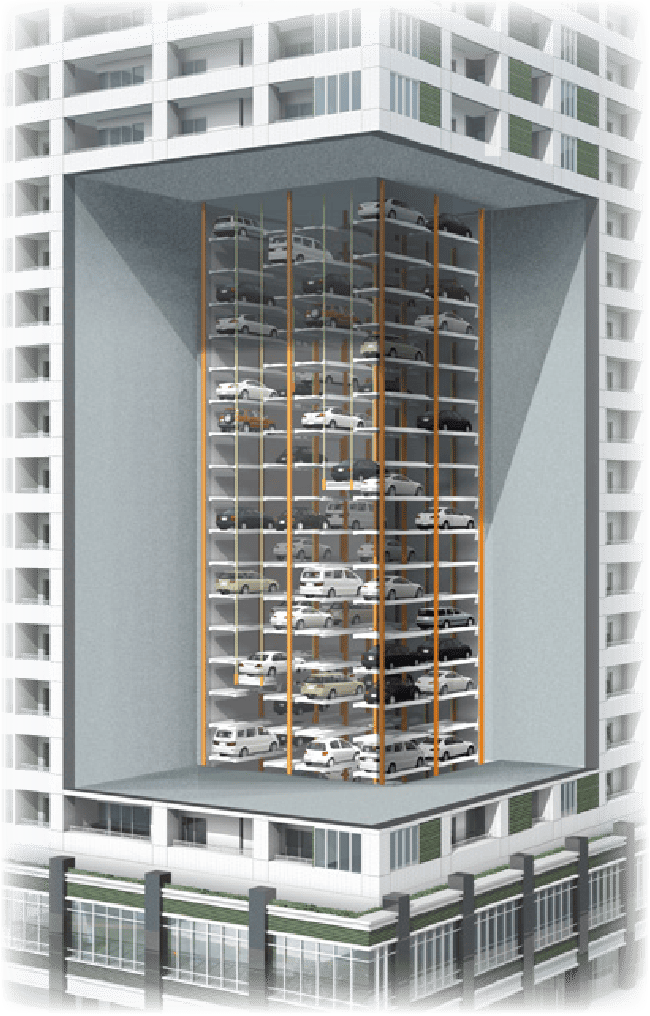 タワーパーキングを建物内に設置することで、居室までの動線を風雨にさらされることなく移動できます。