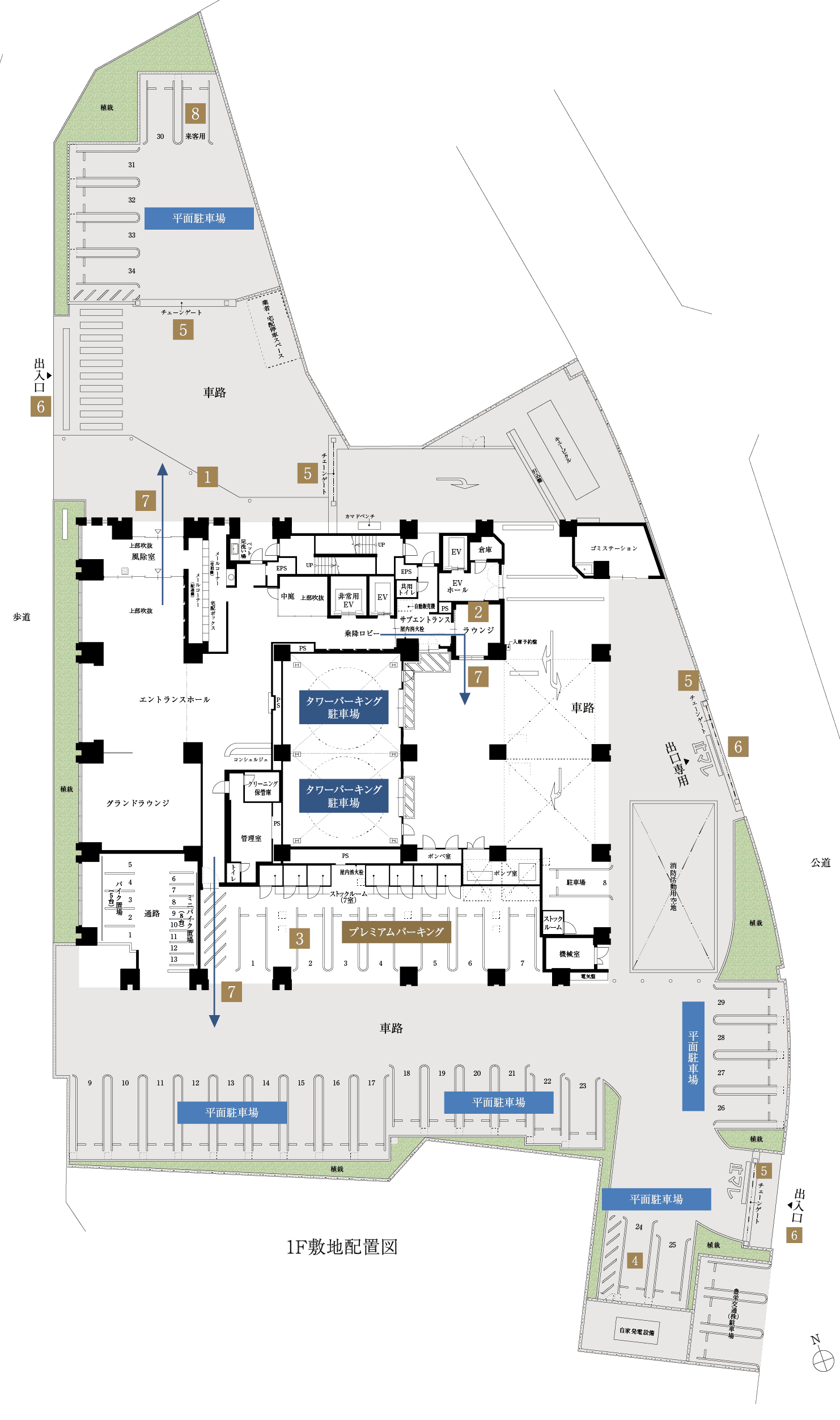 建物の出入口とプレミアム区画の動線は全て屋根付きで、雨天時でも濡れずに乗り降りができる。