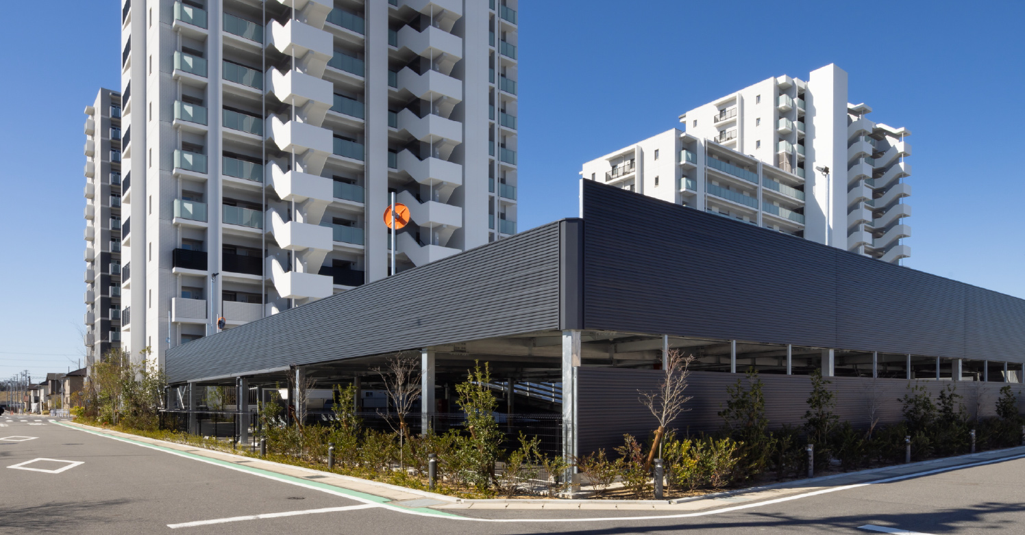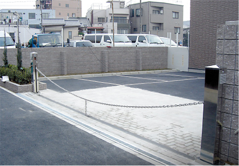 駐車場の入り口に、リモコンで操作できるチェーンゲートを設置。入居者以外の車輌の侵入を防ぎ、防犯性を高めます。